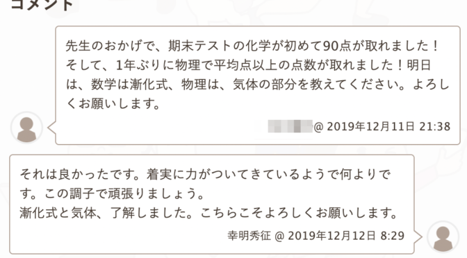 【受講生の声】期末テスト理科が上がりました
