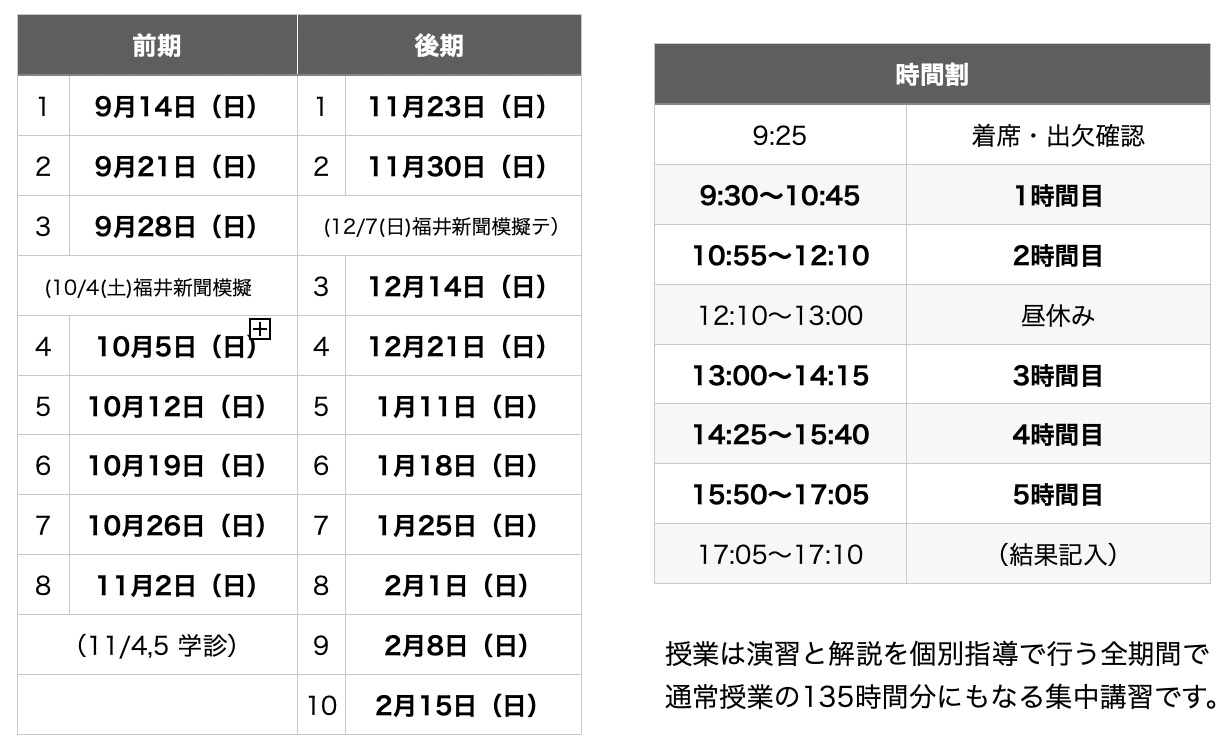 前期:9月14日(日) ~ 11月2日(日) 全8回【学診対策】